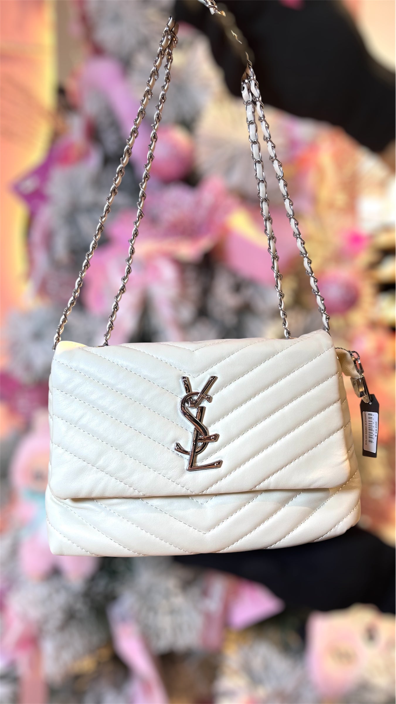 Bolso tipo Shoulder bag pequeño y elegante. Diseño acolchado en patrón de líneas diagonales, le da una textura lujosa y moderna. Con cadena plateada o dorada que sirve como correa, permito para llevar en el hombro o cruzado.